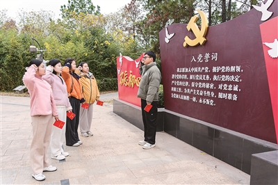 12月2日,江蘇省南京市溧水區(qū)紀(jì)委監(jiān)委組織部分青年黨員干部進行黨章學(xué)習(xí)。圖為青年黨員干部在重溫入黨誓詞。劉勝君 攝