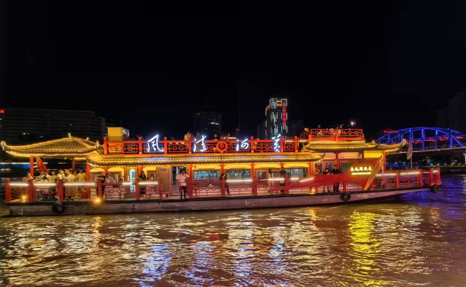 圖為行駛在黃河上的“黃河清風(fēng)”號游船。
