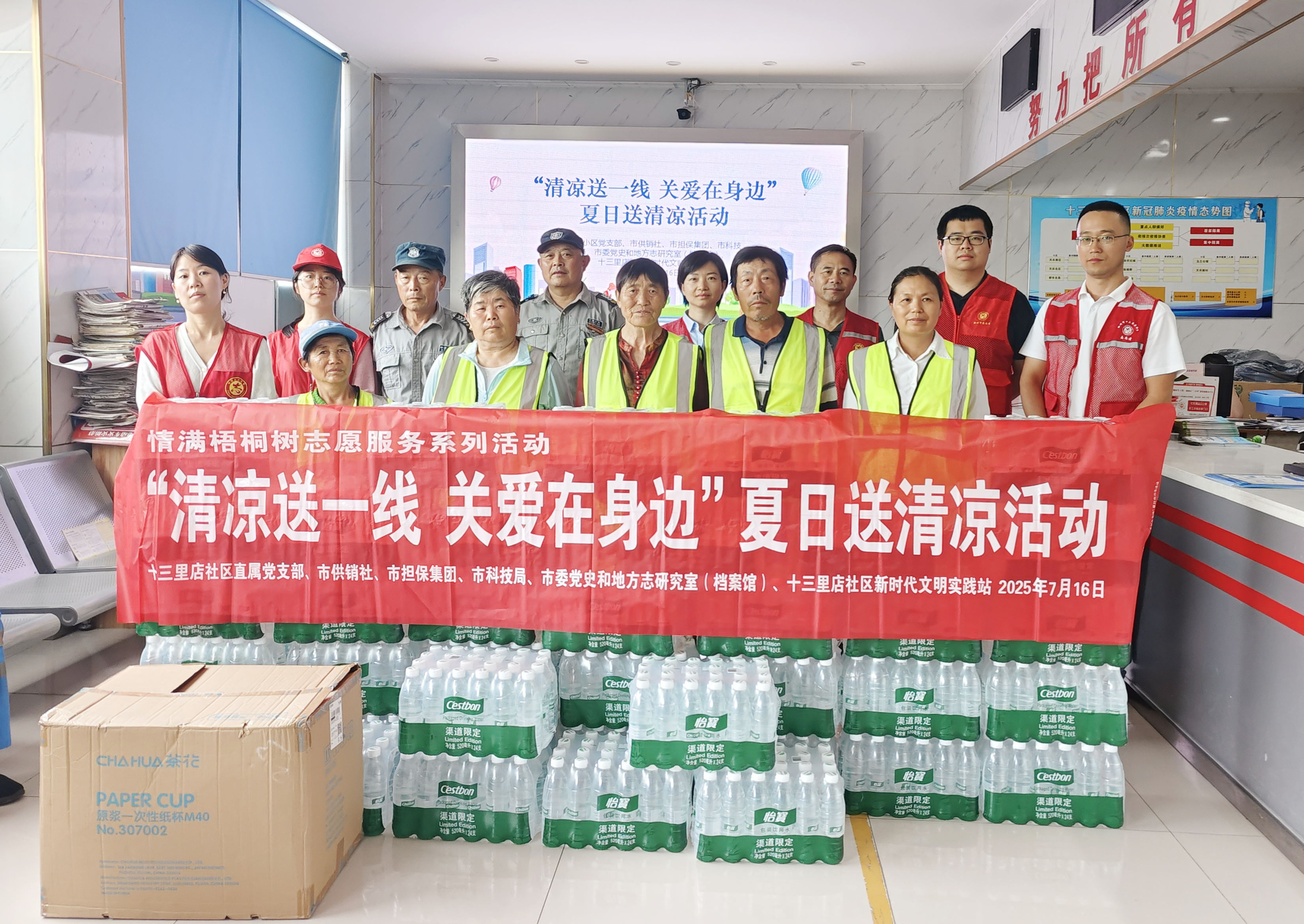 - 入夏以來,持續(xù)高溫炙烤大地,給戶外作業(yè)的環(huán)衛(wèi)工人帶來了嚴(yán)峻“烤”驗。為給炎炎夏日里高溫下作業(yè)的社區(qū)環(huán)衛(wèi)工人們送去一絲清涼和關(guān)愛,7月16日,市擔(dān)保集團三個黨支部聯(lián)合共建單位的黨組織,共同開展“清涼送一線 關(guān)愛在身邊”黨員志愿服務(wù)活動,為共建的十三里店社區(qū)全體環(huán)衛(wèi)工人送去黨組織的關(guān)懷與問候。 活動中,黨員志愿者們將提前準(zhǔn)備好的礦泉水、毛巾、香皂、花露水等防暑降溫物品一一分送到轄區(qū)每一位環(huán)衛(wèi)工手中,并向他們表達(dá)真誠的問候和感激,是他們冒酷暑、頂烈日,用實際行動維護著社區(qū)的環(huán)境整潔,收到物品的環(huán)衛(wèi)工人們顯得格外開心。 通過夏日送清涼志愿服務(wù)活動,進一步拉近黨員與群眾的距離,密切黨群關(guān)系,把“我為群眾辦實事”落到實處。通過“小清涼”傳遞“大文明”,助力營造尊重勞動者、共建和諧文明社區(qū)的良好氛圍。下一步,市擔(dān)保集團將進一步發(fā)揮自身優(yōu)勢...
