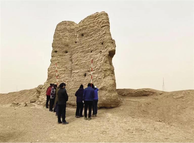 中國(guó)甘肅網(wǎng)3月30日訊 據(jù)蘭州晚報(bào)報(bào)道記者 高慧霞 文/圖)3月中旬以來(lái),玉門(mén)文物工作人員和敦煌研究院專(zhuān)家對(duì)玉門(mén)市漢長(zhǎng)城加固修繕工作進(jìn)行實(shí)地考察和測(cè)量。