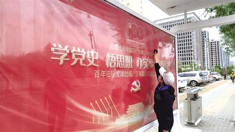 新區(qū)公交公司充分利用公交車這一載體,結合黨史學習教育和慶祝建黨100周年公益宣傳標語,精心設計了宣傳畫,張貼在新區(qū)公交11路、12路、13路、14路、15路、16路等公交車車身醒目位置;在公交車車廂內(nèi)的燈箱、宣傳欄圖文并茂宣傳黨史故事,生動形象地展示黨的光輝歷程;并在公交車車尾屏和出租車頂燈滾動播放宣傳標語。同時,該公司在重要路段沿線公交站亭張貼了黨史學習宣傳海報,打造出以紅色為主題的宣傳走廊,通過一個個黨史流動宣傳站,讓黨史學習教育深入街巷,將黨史知識潛移默化傳遞給市民,引導廣大市民知史愛黨、知史愛國。