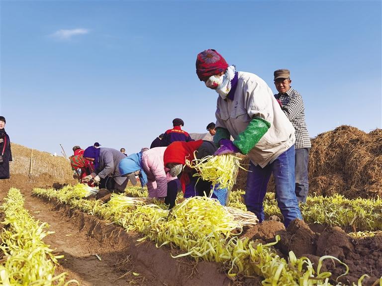 “今年地頭價(jià)每斤15元,韭黃價(jià)格逐年增長,村民收入持續(xù)增加,宣傳太重要了。”韭黃開鐮節(jié)現(xiàn)場,村民們把剛收割的韭黃擺在地頭銷售,慕名而來的“客人”圍攏過來,村民把一捆捆金燦燦的韭黃過稱、裝袋,接著到手的一疊疊鈔票。“給韭黃抖土感覺就像數(shù)錢一樣,嘿嘿,麥草下的‘黃金’今年又豐收了。”村民們你一言我一語,爽朗的笑聲回蕩在冬日的余暉里。