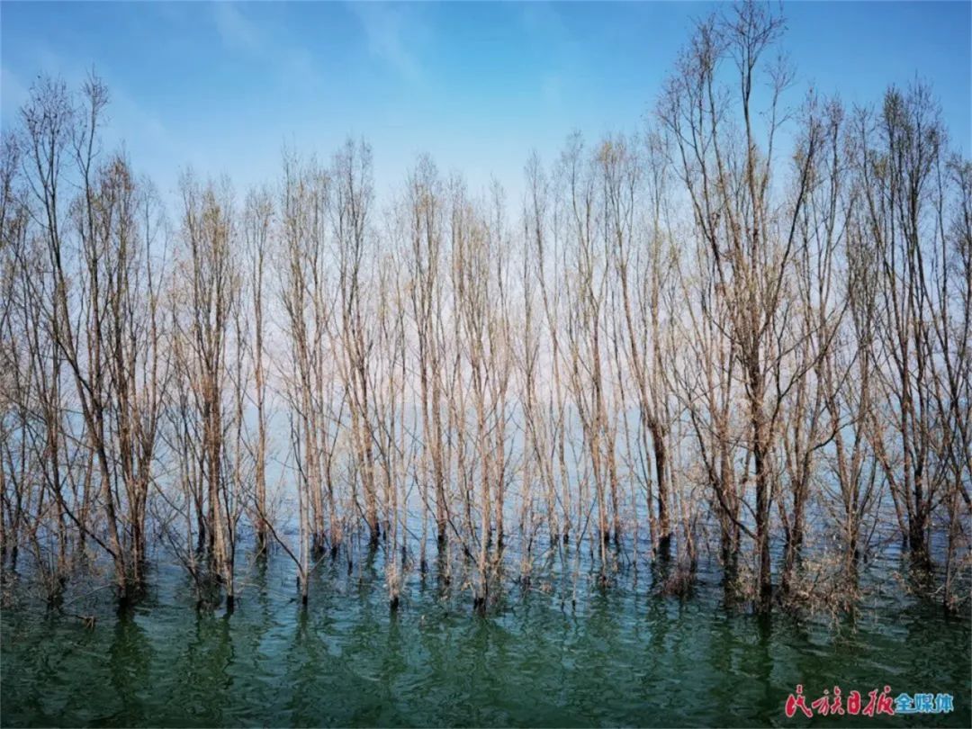 在岸邊,可以看到10公里的柳樹(shù)“站”在水中,根連著根,枝連著枝。這些高大的柳樹(shù),不僅減緩了水面上襲來(lái)的風(fēng)浪,形成第一道保護(hù)“堤壩”,還成為一道亮麗的風(fēng)景線——倒映在湖面上的樹(shù)木婀娜多姿,鳥(niǎo)兒在樹(shù)杈上筑巢棲息,魚(yú)兒在樹(shù)下游玩,好一幅綿長(zhǎng)的水鄉(xiāng)畫(huà)卷。