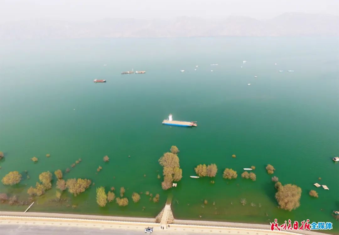 3月23日,記者來(lái)到庫(kù)區(qū)岸邊,遠(yuǎn)看,湖水湛藍(lán),輕舟游弋,水鳥(niǎo)嬉戲;近看,碧波蕩漾,水清見(jiàn)石,魚(yú)翔淺底。在人們的贊嘆聲中,湖面上劃過(guò)一艘小船,那是打撈清理黃河垃圾的清潔船。這艘船從早到晚,來(lái)回游動(dòng),及時(shí)清理著河面的垃圾。