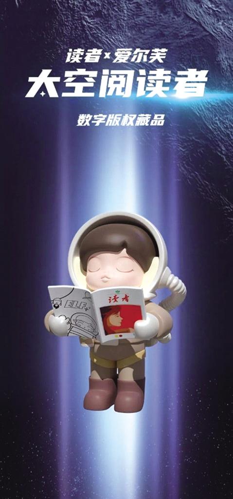 據(jù)介紹,“讀者×愛爾芙.太空閱讀者”是莫嘰文化聯(lián)手讀者出版?zhèn)髅焦煞萦邢薰就瞥龅臄?shù)字版權(quán)藏品。愛爾芙是莫嘰旗下火爆主題IP ,是一位水澤精靈,擁有治愈、溫暖、親和、陪伴的特質(zhì)。本次藏品以3D形態(tài)呈現(xiàn)愛爾芙在太空中手捧《讀者》閱讀的樣子,借此致敬不斷探索、不斷求知的中國(guó)航天人。