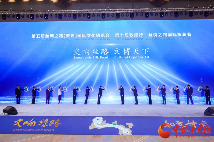 第五屆絲綢之路(敦煌)國際文化博覽會和第十屆敦煌行·絲綢之路國際旅游節(jié)于2021年9月24日—26日在甘肅省敦煌市隆重舉行。中共中央政治局委員、中央書記處書記、中宣部部長黃坤明以視頻形式出席開幕式暨高峰會議并發(fā)表主旨演講,300多名國外、國際組織及國內(nèi)省區(qū)市代表現(xiàn)場參加會議,400多萬網(wǎng)友線上參加有關(guān)活動。大會以習(xí)近平新時代中國特色社會主義思想為指導(dǎo),認(rèn)真落實“一帶一路”倡議,以線上線下相結(jié)合的方式舉辦一系列主體活動,有力促進(jìn)絲路沿線各國文化交流與旅游合作,有效增進(jìn)文化認(rèn)同與情感共鳴,是一次展示中國文化自信、共商“一帶一路”建設(shè)、推動文旅融合發(fā)展的盛會,是一次提升甘肅對外影響力、展示開放新形象、凝聚發(fā)展新動力的盛會,得到了國際社會的廣泛贊譽和一致好評。