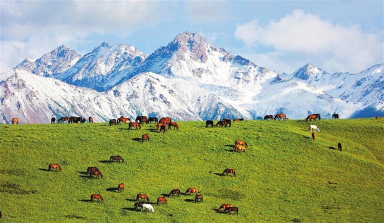 祁連山下的山丹馬場。甘肅省持續(xù)加強(qiáng)祁連山全域保護(hù)和系統(tǒng)修復(fù),依托現(xiàn)代科技建設(shè)“智慧祁連”,形成“天地空”一體化監(jiān)測網(wǎng)絡(luò),生態(tài)治理走上正規(guī)化信息化軌道。王 超攝(中經(jīng)視覺)