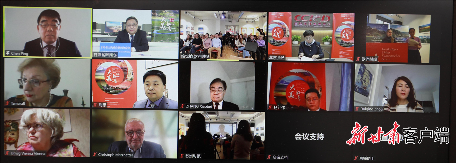 主題展開幕式上,甘肅省委宣傳部副部長、省政府新聞辦主任郭錦詩致歡迎辭,并介紹主題展覽情況。中國駐奧地利大使館文化參贊陳平,維也納聯(lián)合國婦女協(xié)會主席桑迪亞·普瑞拉,中國外文局副總編輯、國際傳播發(fā)展中心主任陳實(shí),奧地利聯(lián)邦商會副主席克里斯托弗·馬茨內(nèi)特,歐洲時(shí)報(bào)文化傳媒集團(tuán)總裁,歐洲時(shí)報(bào)社社長張曉貝出席開幕式并致辭。甘肅省委宣傳部副部長、省政府新聞辦主任郭錦詩線上出席并宣布主題展開幕。