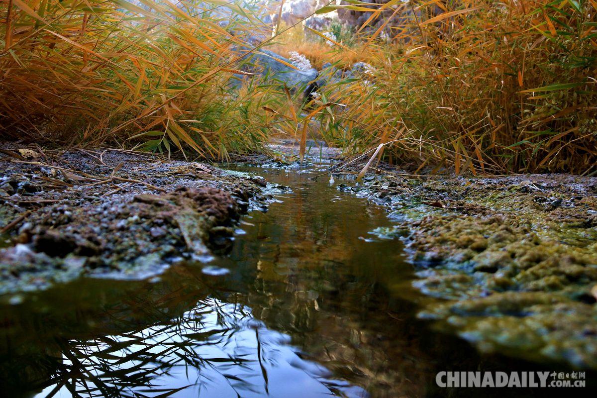 金秋十月,位于世界文化遺產(chǎn)敦煌市懸泉置遺址的懸泉谷內(nèi)的胡楊、蘆葦?shù)葮?shù)木植被被秋色渲染,景色如畫,美不勝收。據(jù)介紹,甘肅省敦煌市懸泉置遺址緊靠三危山山口。因水從高臺(tái)流下,懸空入潭,故名懸泉,敦煌當(dāng)?shù)厝怂追Q“吊吊水”,又稱貳師泉。