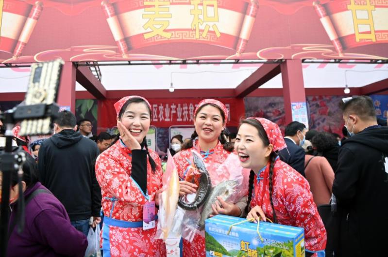 3月17日,“村花”直播團(tuán)直播帶貨,助力“甘味”產(chǎn)銷。當(dāng)日,甘肅省“田間行甘味產(chǎn)銷季”暨“云品甘味”促消費(fèi)活動(dòng)啟動(dòng)儀式在主會(huì)場天水市舉行。