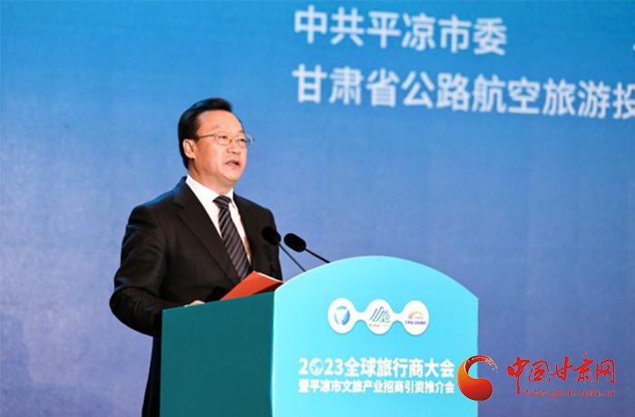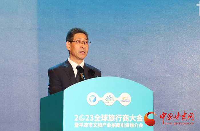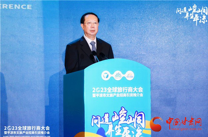 何效祖在致辭中說(shuō),平?jīng)鍪歉拭C向東開(kāi)放的“門(mén)戶”城市,是風(fēng)景宜人的旅游城市,是甘肅布局的文旅康養(yǎng)基地和支撐“一核三帶”區(qū)域發(fā)展格局中的重要支點(diǎn),擁有崆峒山、大云寺·王母宮、瑤池溫泉等眾多聞名遐邇的人文和自然景觀。今天,我們與平?jīng)鍪形姓⒅袊?guó)旅行社協(xié)會(huì)、甘肅公航旅集團(tuán)一道搭建平臺(tái),誠(chéng)邀各位嘉賓走進(jìn)甘肅、深入平?jīng)?,組織開(kāi)展宣傳推介、洽談合作、展示展銷(xiāo)、考察踩線等系列活動(dòng),就是要引導(dǎo)大家深度感知甘肅高質(zhì)量發(fā)展的強(qiáng)烈愿望,實(shí)地觸摸甘肅文旅如火如荼的生動(dòng)實(shí)踐,誠(chéng)懇表達(dá)隴原兒女“視企業(yè)家為最寶貴財(cái)富”的真誠(chéng)合作和赤誠(chéng)服務(wù)之心。我們衷心希望,廣大中外旅行商和文旅專(zhuān)家、文旅企業(yè)家以本次大會(huì)為契機(jī),加強(qiáng)交流互鑒,深化務(wù)實(shí)合作,加大在甘投資力度,組織更多游客到甘肅觀光旅游,帶動(dòng)更多優(yōu)質(zhì)文旅企業(yè)和項(xiàng)目落戶甘肅,合力譜寫(xiě)甘肅文旅高質(zhì)量發(fā)展的嶄新篇章!
