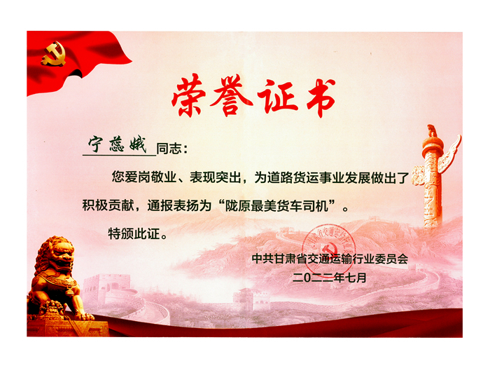 誠(chéng)實(shí)守信奔跑在幸福路上的寧蕊娥也成為甘肅交通運(yùn)輸系統(tǒng)2023年獲得全國(guó)五一勞動(dòng)獎(jiǎng)?wù)碌膭趧?dòng)者。