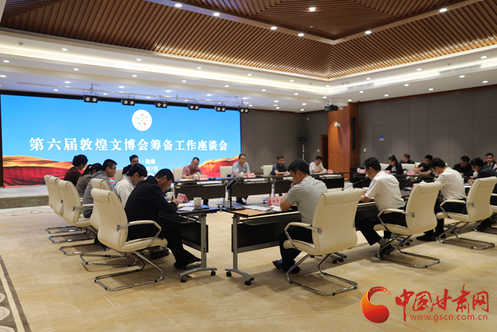 在隨后召開的座談會上,敦煌市相關(guān)負責人介紹了籌備工作情況和需要協(xié)調(diào)解決的事項。文化展覽組,論壇會議組、接待聯(lián)絡(luò)組相關(guān)負責人與敦煌市對應(yīng)工作組進行對接,對需要協(xié)調(diào)解決的事項進行了交流。