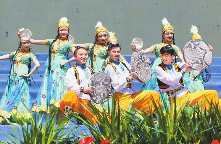 隨著曼妙激昂的舞蹈《石榴花開(kāi)》上演,這場(chǎng)屬于“花兒”的盛會(huì)正式啟幕。隨后,《雪白的鴿子》《巴西古溜溜》、優(yōu)雅大氣的舞蹈《吉祥歡歌》《絲路民族風(fēng)》《今夜草原有雨》《白牡丹令》等經(jīng)典歌舞節(jié)目精彩上演,贏得臺(tái)下陣陣掌聲。甘肅籍民謠歌手張尕慫帶來(lái)的《等風(fēng)來(lái)》更是將現(xiàn)場(chǎng)氣氛推向高潮,來(lái)自各個(gè)民族的數(shù)千觀眾沉浸在這場(chǎng)非遺文化盛宴中。