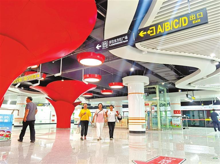 “我住在附近時(shí)刻關(guān)注著工程進(jìn)展,圍擋板拆除后,今天近距離接觸站口還是第一次。”在雁白大橋站A口,關(guān)注開通試運(yùn)營(yíng)儀式的李阿姨抱著小孫子早早就來(lái)到地鐵站,李阿姨準(zhǔn)備當(dāng)天上午地鐵開通時(shí),乘坐首趟列車,由雁白大橋到東方紅廣場(chǎng)感受地鐵2號(hào)線一期全程的快速與舒適。
