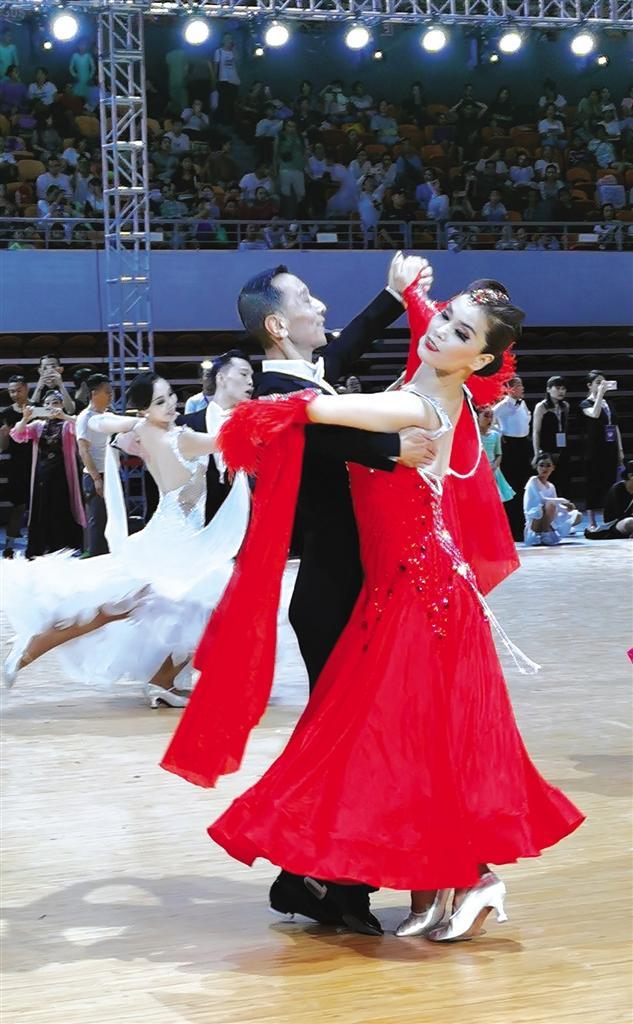 當(dāng)天的蘭州奧體中心綜合館內(nèi)燈光璀璨、激情四射。伴著或動感或舒緩的音樂,優(yōu)雅浪漫的華爾茲、熱情奔放的探戈、性感狂野的倫巴……舞者們依次上場,將最優(yōu)美、最富激情、充滿藝術(shù)活力與創(chuàng)造力的高水平體育舞蹈展現(xiàn)在觀眾和裁判面前。