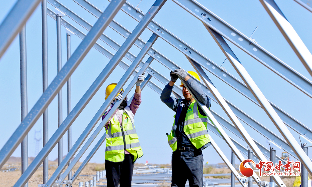國(guó)慶假期,在甘肅省張掖市高臺(tái)縣羅城鎮(zhèn)北部灘的高臺(tái)隴和10萬(wàn)千瓦光伏發(fā)電項(xiàng)目建設(shè)現(xiàn)場(chǎng),中國(guó)電建一線建設(shè)者們搶時(shí)間、趕進(jìn)度,力爭(zhēng)在年底前完成項(xiàng)目任務(wù),用奮斗助力新能源建設(shè)。