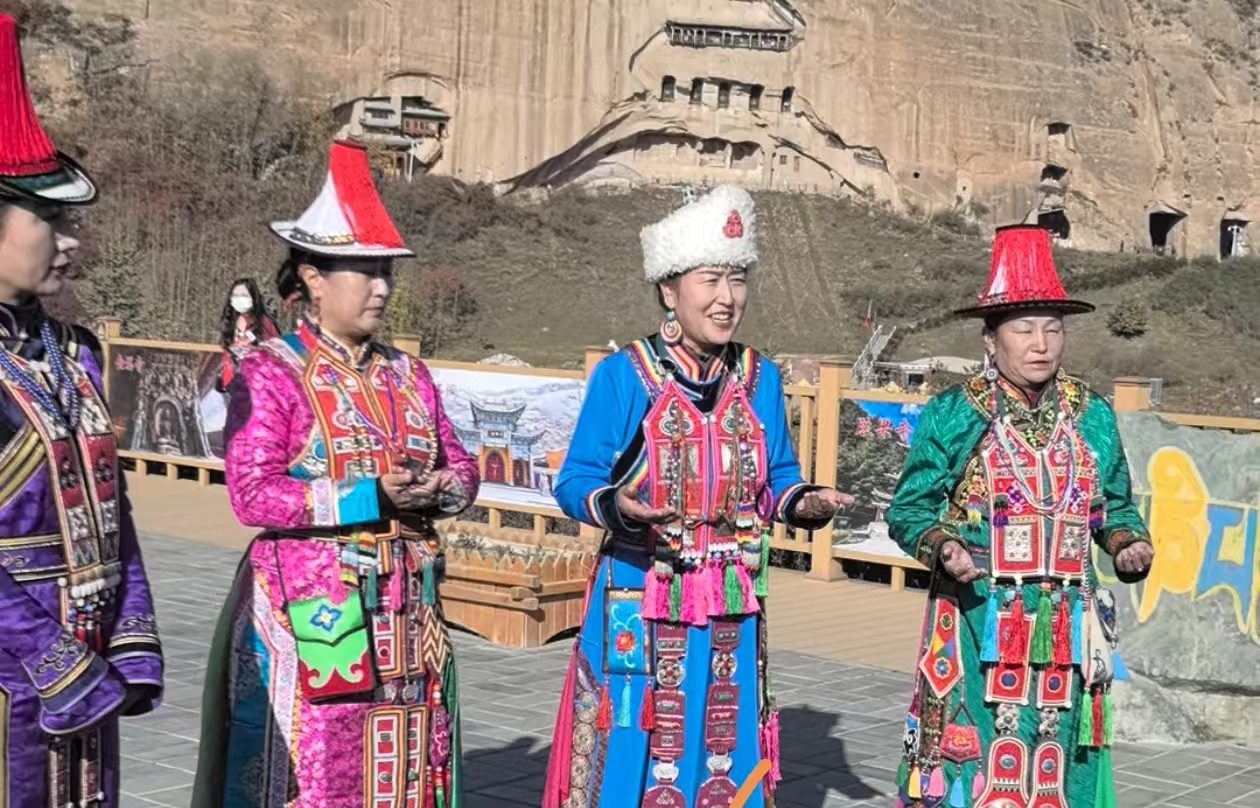 10月17日,探訪第四站,頂端新聞?dòng)浾邅淼綇堃词?,位于祁連雪山腳下的馬蹄寺石窟群,探訪這座將棧道鑲嵌在山體之內(nèi)的石窟,在肅南感受裕固族的民俗風(fēng)情。