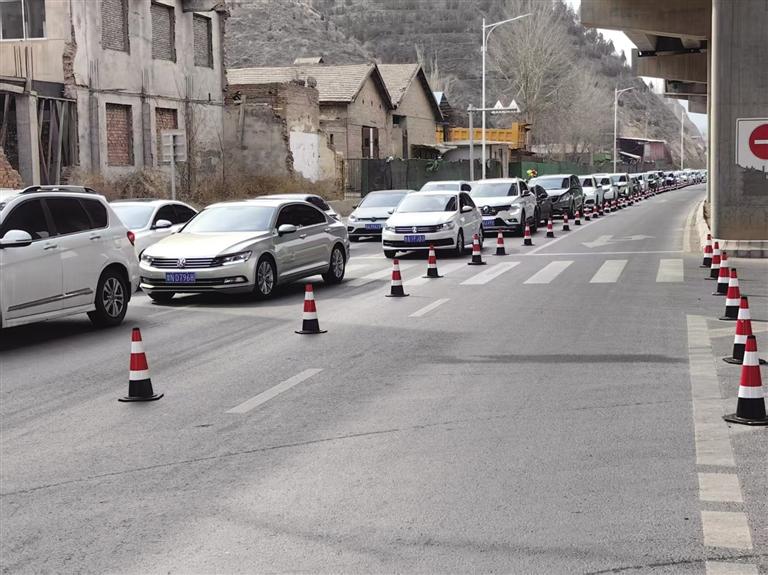 3月22日上午8時,通往大砂坪公墓區(qū)、甘肅臥龍崗人文紀念園的佛慈大街上車流量明顯增多,雖然車輛行駛速度緩慢,但整體秩序良好。在大砂坪橋公交站處準備乘坐清明節(jié)掃墓臨時專線公交車前往公墓祭掃的市民排起了長隊。墓園附近,等待進入的車輛也排起了長隊,蘭州市交警支隊河北大隊交警引導祭掃車輛安全進出墓園停車場,保障路面交通暢通。
