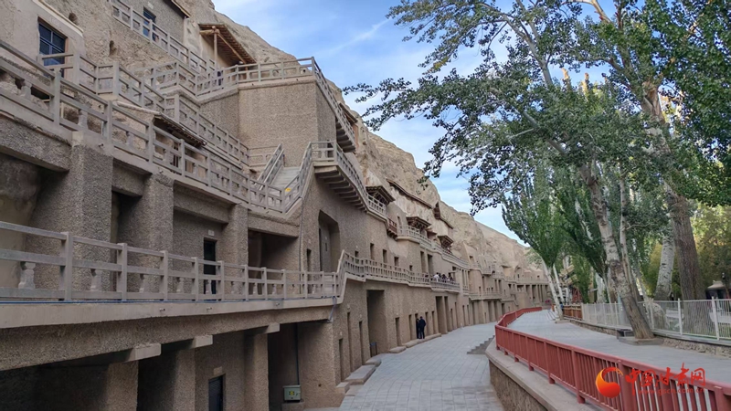 走出莫高窟,暖陽下的九層樓像戈壁灘上的一幅“中國畫”。壁畫不會說話,卻用顏色與線條告訴世界:何以中國?在敦煌,在墻上,在人們仰頭凝視壁畫的那一刻,中國已然數(shù)千年,且從未褪色。