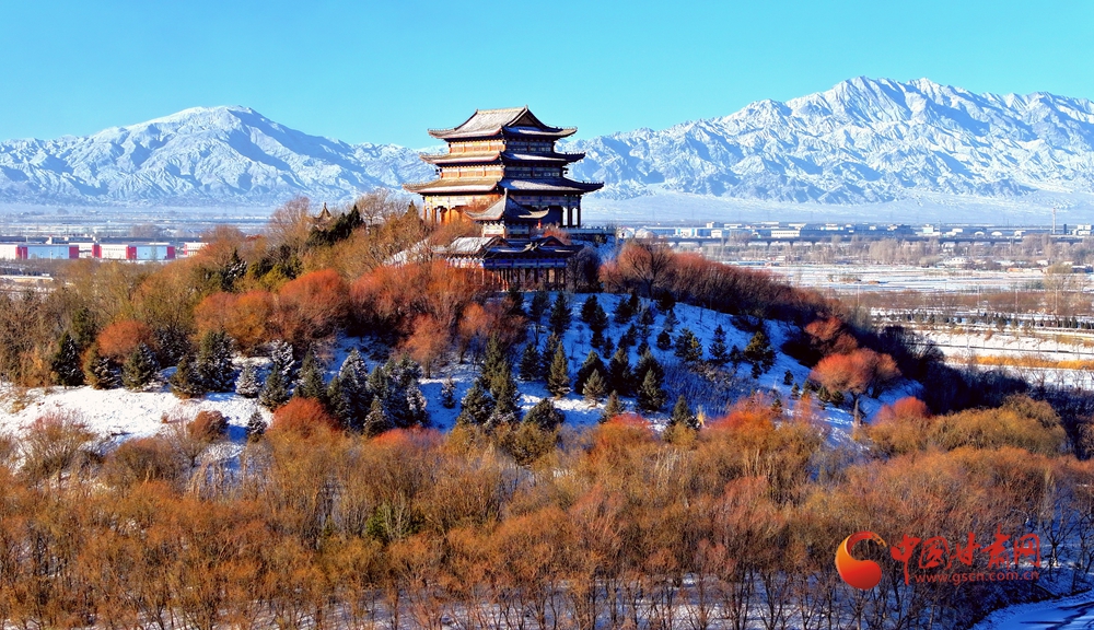 11月24日,一場(chǎng)瑞雪過后,臨澤大地銀裝素裹。朱紅殿宇與皚皚祁連山相映成趣,繪就獨(dú)特意境。雙泉湖雖覆薄冰,卻有成群天鵝游弋,潔白的身影在冰面與雪色間穿梭,為靜謐的冬日注入生機(jī)。