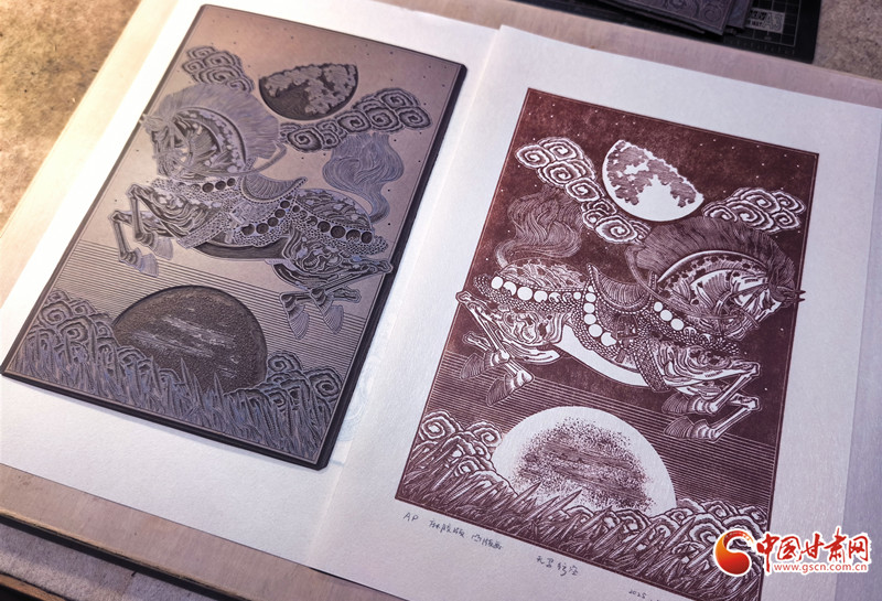 從彩陶紋樣到飛天神韻,從黃河之濱到絲路駝鈴,當(dāng)傳統(tǒng)技藝遇上現(xiàn)代思維,當(dāng)?shù)赜蛭幕鲎踩蛞曇?,趙寧的刀刻人生,既是個人對藝術(shù)的執(zhí)著追求,更是一位非遺傳承人對文化根脈的深情守護。正如他所說:“版畫不是冰冷的木板,而是有溫度的文化記憶。”在這方寸之間的刻板上,甘肅的故事正被重新書寫,非遺傳承也在時代語境下實現(xiàn)著創(chuàng)造性轉(zhuǎn)化,綻放出更加絢爛的光彩。