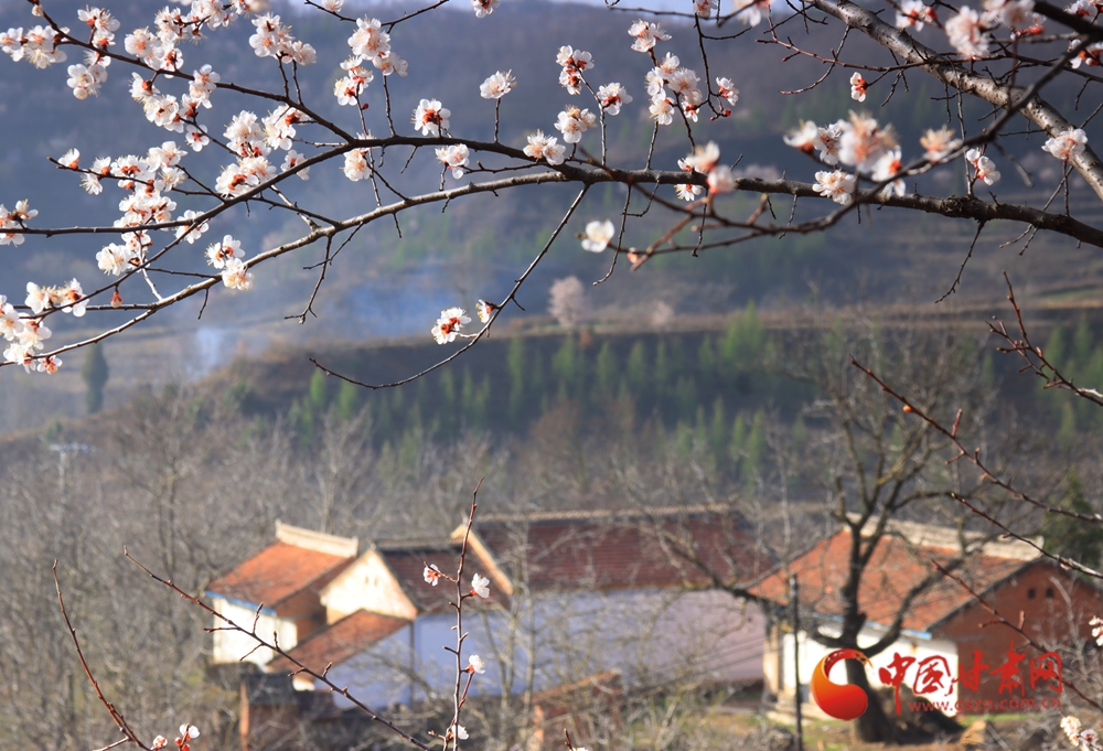 春風(fēng)吹醒山野,粉白杏花綴滿枝椏,錯落村舍掩映在花影山色間,一派悠然的鄉(xiāng)村春日景致