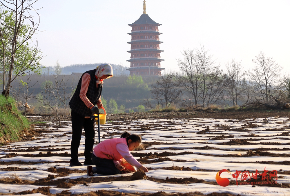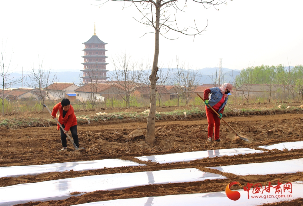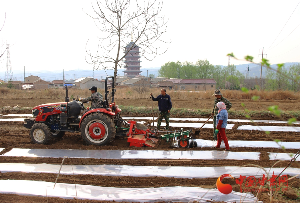 拖拉機(jī)在田壟間劃出規(guī)整的覆膜線條,農(nóng)人揮鋤勞作