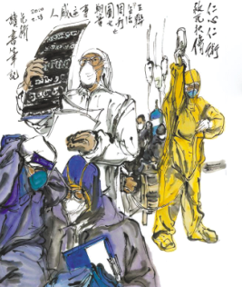 中國(guó)畫《仁心仁術(shù),救死扶傷》。