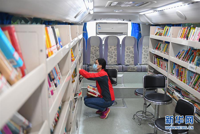 3月26日,在長沙岳麓區(qū)石嶺塘社區(qū),市民在流動圖書館里挑選書籍。 近日,在做好疫情防控工作的同時,長沙流動圖書館恢復運營。長沙流動圖書館是長沙圖書館的總分館流動服務項目之一,以大巴車為載體,每月定期到社區(qū)、學校、企業(yè)、工地等區(qū)域,為市民提供閱覽、咨詢、辦證、借書、還書等便捷化公共服務。 新華社記者 陳澤國 攝