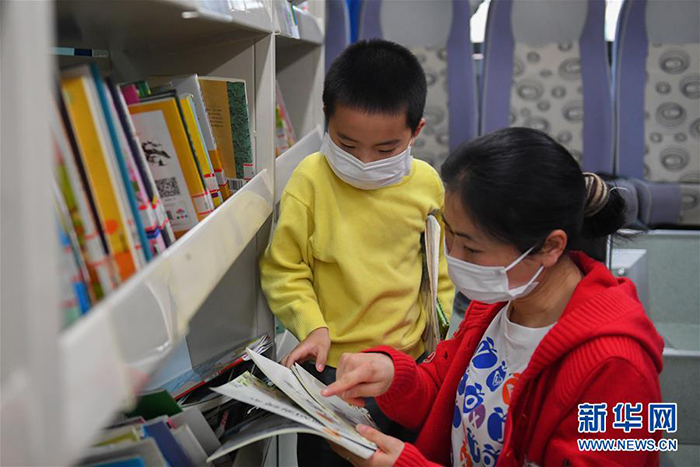 3月26日,在長沙岳麓區(qū)石嶺塘社區(qū),家長和小朋友在流動圖書館里挑選書籍。 近日,在做好疫情防控工作的同時,長沙流動圖書館恢復運營。長沙流動圖書館是長沙圖書館的總分館流動服務項目之一,以大巴車為載體,每月定期到社區(qū)、學校、企業(yè)、工地等區(qū)域,為市民提供閱覽、咨詢、辦證、借書、還書等便捷化公共服務。 新華社記者 陳澤國 攝