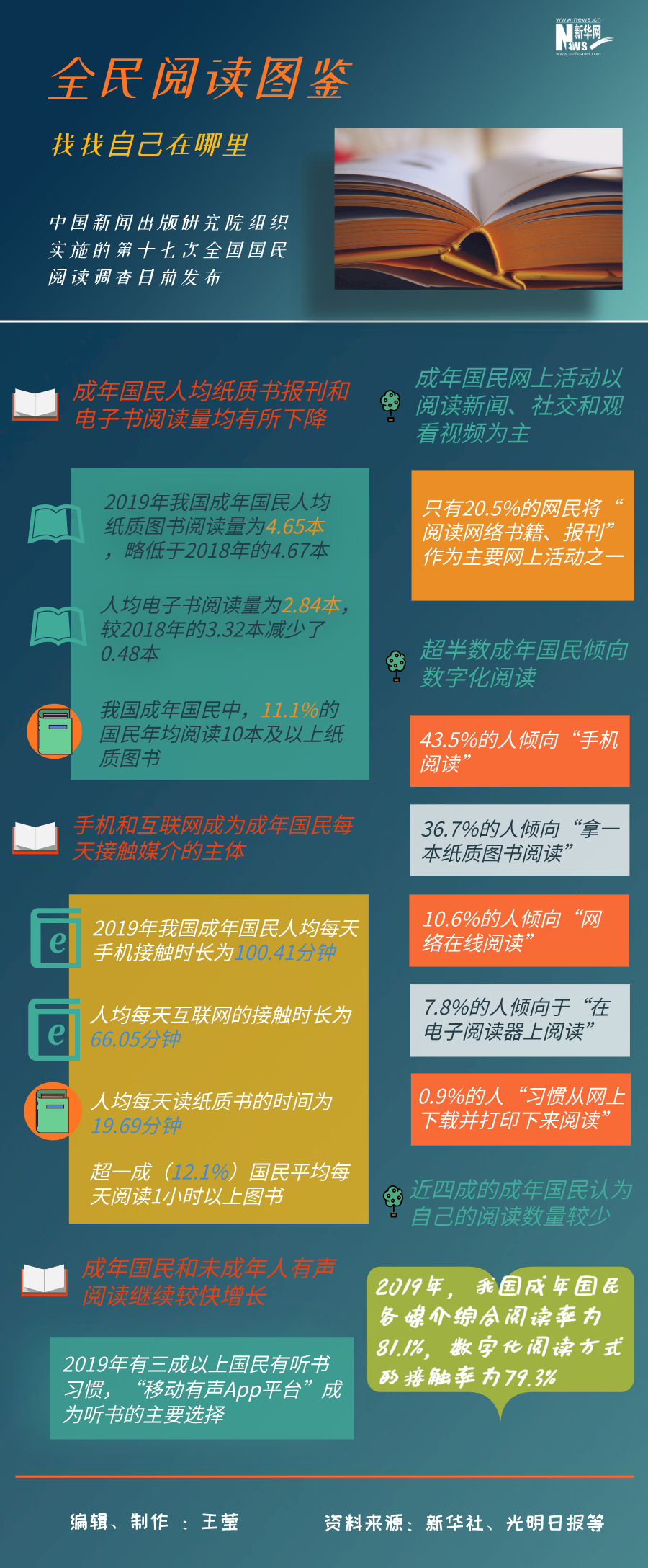 今天是世界讀書日,中國新聞出版研究院日前公布第十七次全國國民閱讀調(diào)查結(jié)果。國民人均一年讀幾本書?用在閱讀上的時(shí)間有多少?隨著移動(dòng)互聯(lián)趨勢的發(fā)展,在閱讀方式和閱讀習(xí)慣上有哪些改變?跟隨這份全民閱讀圖鑒,找找自己在哪里。