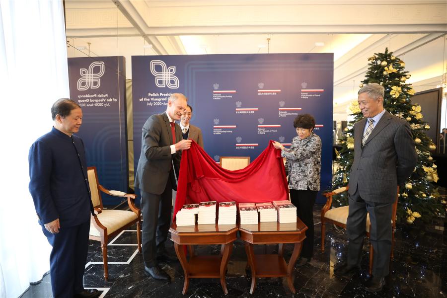 波蘭駐華大使賽熙軍(左二)和五洲傳播出版社副社長(zhǎng)荊孝敏(右二)為新書揭幕。五洲傳播出版社供圖