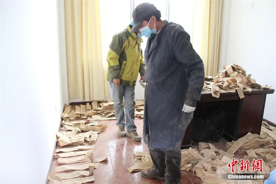 挖掘工作持續(xù)了3天才結(jié)束。由于當時寺院條件簡陋,古籍散葉被臨時裝入編織袋中,足足裝滿了68袋。