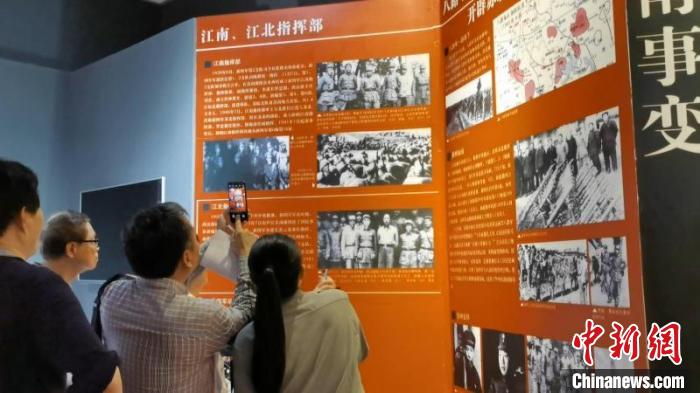 現(xiàn)場采風(fēng)的作家和新四軍后代代表一行參觀新四軍軍部紀念館?!〉页棵?nbsp;攝