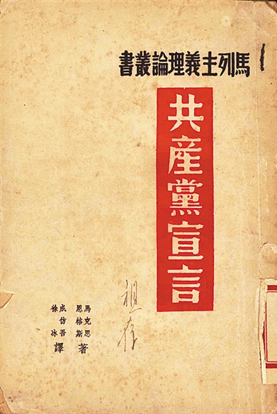 陜北公學(xué)首任校長(zhǎng)成仿吾曾在法國(guó)和德國(guó)學(xué)習(xí)馬克思主義理論,并受中共駐共產(chǎn)國(guó)際代表蔡和森委托,翻譯《共產(chǎn)黨宣言》。盡管這部譯稿遺失,卻奠定了他五譯《共產(chǎn)黨宣言》的基礎(chǔ)。人大圖書(shū)館收藏了其中3個(gè)刊發(fā)本,包括初印版。其中的二譯本,是受中共中央宣傳部委托,在解放區(qū)公開(kāi)組織翻譯的第一個(gè)漢語(yǔ)全譯本??箲?zhàn)期間,該譯本是黨員干部的必讀書(shū)籍,也是陜北公學(xué)馬列課程的必備教材。