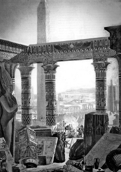 不過,真正使埃及古文明得到新生的,關(guān)鍵還在于拿破侖軍隊中的近200名著名學者,他們中有東方學家、藝術(shù)家、數(shù)學家、化學家、醫(yī)生、建筑師、工程師、自然科學家、社會學家等,其任務是考察埃及社會的方方面面,“探索、繪圖,并對不為人知的埃及進行全方位的描述、探查和研究”。這些學者回國后,把他們在埃及的所見所聞、對埃及風土人情的素描和制作的拓片等精心整理出來,于1809年至1829年之間,陸續(xù)編纂和出版了24卷本的《埃及記述》(又譯作《埃及志》等)。該書一經(jīng)問世立即引起轟動,它是第一套系統(tǒng)性介紹古埃及文明和社會面貌的科普百科全書式讀物,內(nèi)容極為豐富,插圖之精美、裝幀之考究,都令人稱贊。