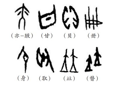 “象形者,畫成其物,隨體詰詘”(《說文·敘》),是根據(jù)客觀物象的形態(tài)輪廓來構(gòu)成文字符號的方法。象形字又稱作“文”,“文者,物象之本”。如“貝”就是一個(gè)海貝的象形,也指貨幣;“冊”,就是由竹簡編起來的簡冊的象形;“身”為妊娠的形象,突出腹部。