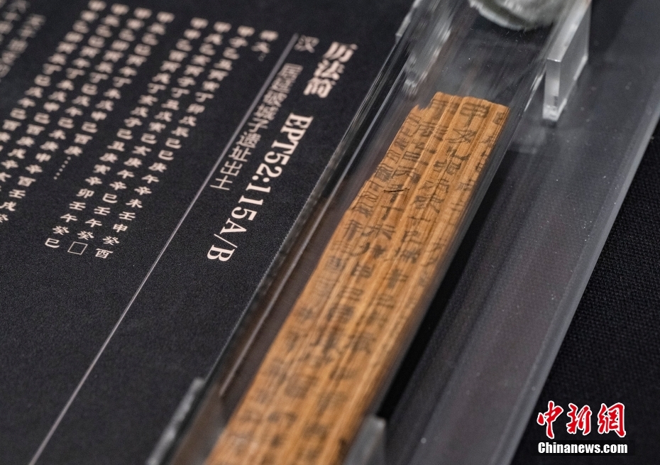 1月17日,“二十世紀(jì)初中國古文獻(xiàn)四大發(fā)現(xiàn)展”正在位于北京的國家典籍博物館內(nèi)展出。本次展覽分為“殷墟甲骨”“居延漢簡(jiǎn)”“敦煌遺書”“明清檔案”四個(gè)專題,首次將分藏于各處的四大文獻(xiàn)薈萃一堂,集中多種類型的珍貴文物文獻(xiàn)共249種,382件,是目前為止“四大發(fā)現(xiàn)”文物最大規(guī)模的展覽。圖為“居延漢簡(jiǎn)”展區(qū)中展示的一條“歷法簡(jiǎn)”的真跡實(shí)物展品。 中新社記者 侯宇 攝