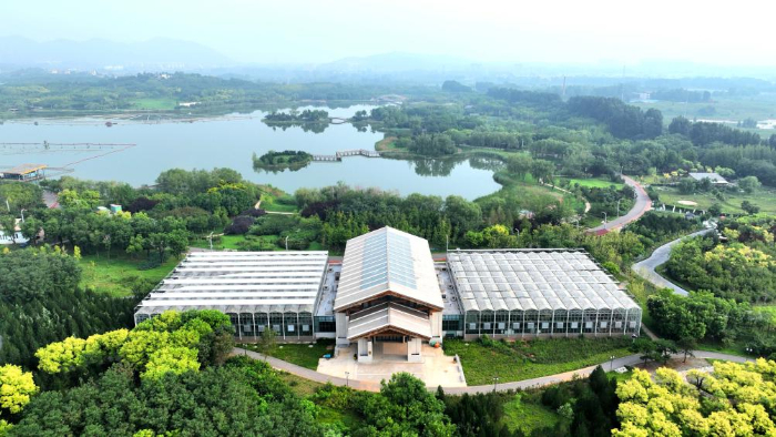 8月9日拍攝的位于河北省石家莊市鹿泉區(qū)龍泉湖公園內(nèi)的一處公園書房(無人機照片)。