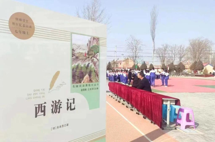 寧夏靈武市狼皮子梁學(xué)校舉辦以閱讀為主題的開(kāi)學(xué)典禮。受訪者供圖