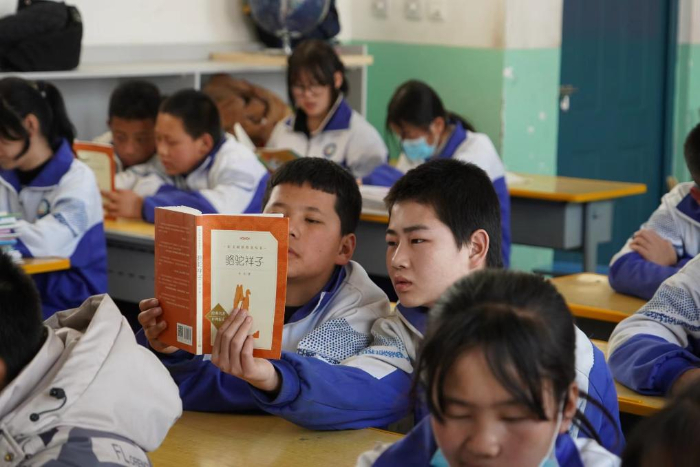 寧夏靈武市狼皮子梁學(xué)校的學(xué)生同讀一本書(shū)。受訪者供圖