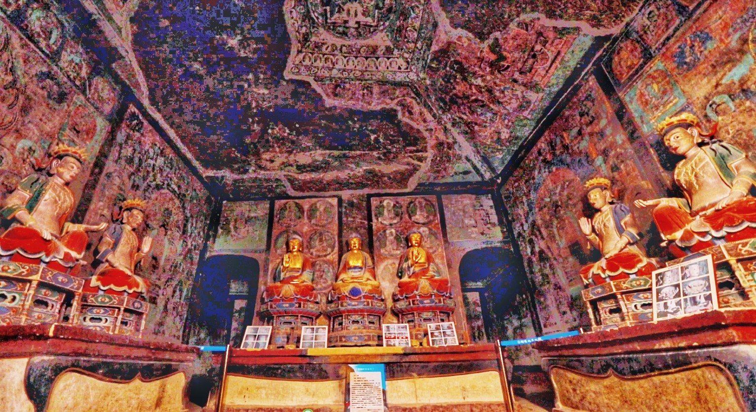 東千佛洞因地理位置相較于敦煌西千佛洞,故名東千佛洞,又因西夏7號(hào)窟前室東西壁對(duì)稱(chēng)彩繪《接引佛祖》各一幅,故又名“接引寺”。初創(chuàng)于唐,五代、西夏、元、清各代增修,逐步形成較大規(guī)模的石窟群,現(xiàn)存23窟,以?xún)?nèi)容豐富、技藝精湛的西夏壁畫(huà)稱(chēng)絕于世,其密宗佛教壁畫(huà)填補(bǔ)了敦煌莫高窟壁畫(huà)藝術(shù)的空白。