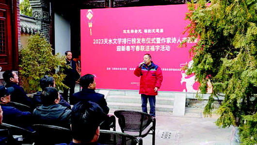 近日,由王若冰文化工作室組織評選的“2023天水文學(xué)排行榜”上榜作品揭曉,15位作家的15篇(部)作品榮登榜單。同時(shí),2023天水文學(xué)排行榜發(fā)布儀式暨作家詩人書畫家“迎新春 寫春聯(lián) 送福字”活動在天水古城三號院舉行。