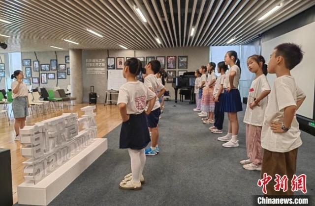 寧波圖書館的“天一童藝”公益項(xiàng)目現(xiàn)場(chǎng),孩子們跟著老師學(xué)唱由《千字文》改編的歌曲?!≈行戮W(wǎng)記者 應(yīng)妮 攝