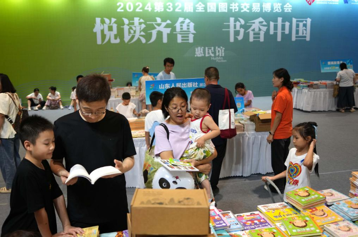 7月26日,讀者在第三十二屆全國圖書交易博覽會(huì)山東展區(qū)參觀。