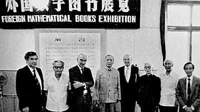 1980年,施普林格出版社在北京一個數(shù)學(xué)研討會上舉辦外國數(shù)學(xué)圖書展,出席者包括著名數(shù)學(xué)家吳文?。ㄗ蠖?、陳省身(左四)和江澤涵(右三)。作者供圖