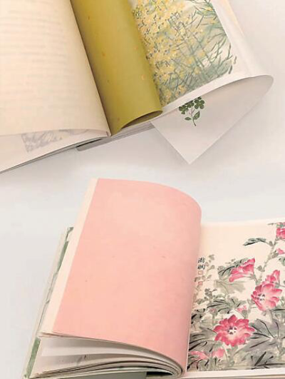為了更好地呈現(xiàn)書籍裝幀效果,封面制作采用純色立體加印,不加任何裝飾。書中還配有由藝術(shù)家親手繪制的24幅珍藏版植物大圖,色彩溫潤(rùn)典雅,撕取后還可自行裝裱。該書采用了傳統(tǒng)三孔古線裝的裝訂方式,以純天然麻繩全手工裝訂、配頁(yè),共計(jì)58道工序。紙張切面三方全磨毛邊,呈現(xiàn)出自然肌理。章節(jié)頁(yè)所作的翻折處理,使得植物圖像在手工紙的覆蓋下若隱若現(xiàn),虛實(shí)相生,既提升了主題的表現(xiàn)力,也增添了閱讀的趣味。