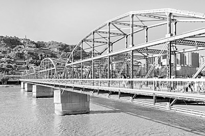 以百年時間看黃河,《黃河中國》彰顯黃河古文明之上崛起的現(xiàn)代文明。在書中我特意寫了三座百年黃河鐵橋,它們分別是蘭州黃河鐵橋、鄭州平漢鐵路黃河橋和濟(jì)南濼口黃河鐵路橋。一百年放置在歷史長河里不算長,卻是一個較為合適的觀照近現(xiàn)代中國發(fā)展的時間點。從擺渡、繩渡到石橋、木橋、浮橋、鐵路橋、公路橋,橋梁建筑史的發(fā)展足以證明人類社會的進(jìn)步。黃河上最初修建鐵橋的歷史在晚清末年,正是中華民族處于內(nèi)憂外患之際,光緒二十六年(1900)清政府決定修建平漢黃河鐵路橋,這是黃河上的第一座鋼鐵建筑,然而在1938年抗戰(zhàn)烽火中,為阻擋日軍進(jìn)攻,被炸毀了,現(xiàn)在只剩下5孔橋墩。以5孔橋墩存在的黃河第一座鐵橋,象征著黃河上現(xiàn)代工業(yè)文明的興起與民族深深的精神創(chuàng)傷。如今80多年過去了,鄭州地段已經(jīng)修建了十余座黃河橋,每一座都很現(xiàn)代很漂亮。自新中國成立以來,黃河安瀾75年,從戰(zhàn)火紛飛到國泰民安,黃河是國家昌盛、民眾幸福的最好見證者。