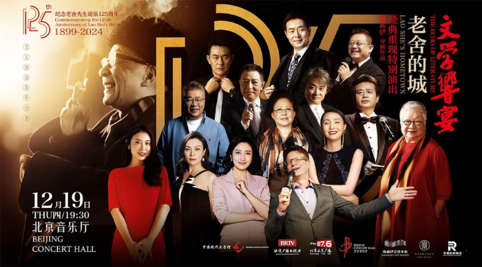 12月19日,一場(chǎng)獨(dú)特的文學(xué)“響”宴在北京音樂(lè)廳舉行。這是一期以老舍為文化主題的詩(shī)文雅集,一個(gè)關(guān)于歷史文化名城北京的年度盛典。在總導(dǎo)演陳薪伊的引領(lǐng)下,濮存昕、斯琴高娃、史可、陶虹、春妮、季冠霖、李立宏、任志宏、徐濤、大山、李洪濤、小柯、張樹(shù)榮等眾多著名藝術(shù)家,共同誦讀老舍先生的經(jīng)典名作,向這位偉大的人民藝術(shù)家致敬。